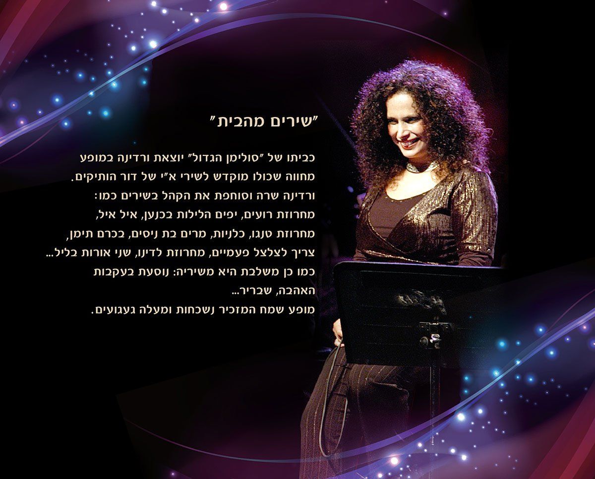 ורדינה כהן זמרת ומגישה מופע הכולל את להיטיה הידועים וזמר עברי במיטבו עם מחרוזות שירים סוחפות בשיתוף הקהל.